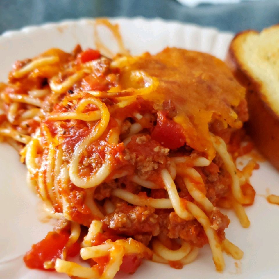 Easy baked spaghetti made quickly in the oven. Use different cheeses to create your signature dish.